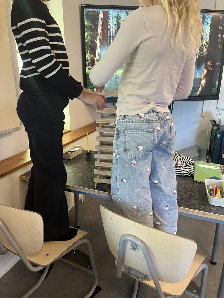 Vi har inlett den här terminens lärande i NO genom att utforska kraft och rörelse. Varje vecka möter vi ett nytt fenomen såsom tyngdkraft, friktion och balans. Vi inleder lektionen med att se ett avsnitt av programmet NO-tv från UR. Det ger oss en grundförståelse för fenomenet och gör att vi efteråt kan ha diskussioner. I diskussionerna samtalar vi i par och helgrupp, där får vi möjlighet att använda nya begrepp, ge exempel för att knyta an till vår nya kunskap.