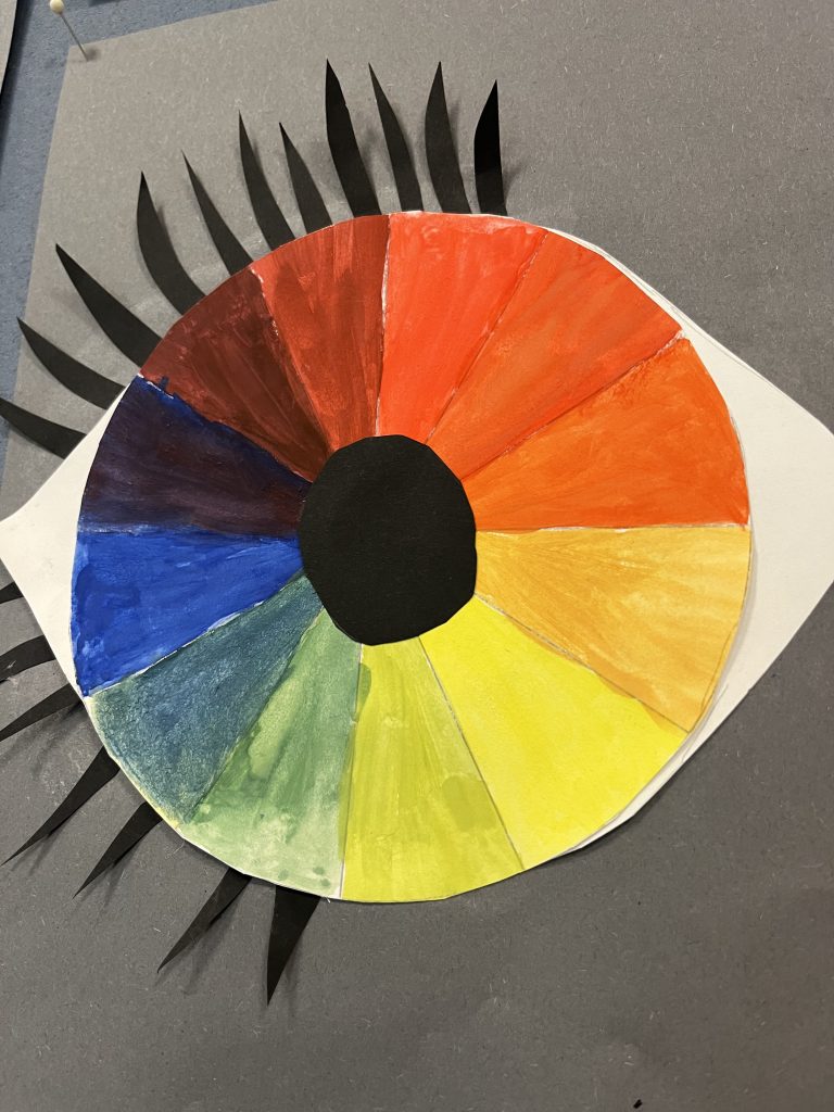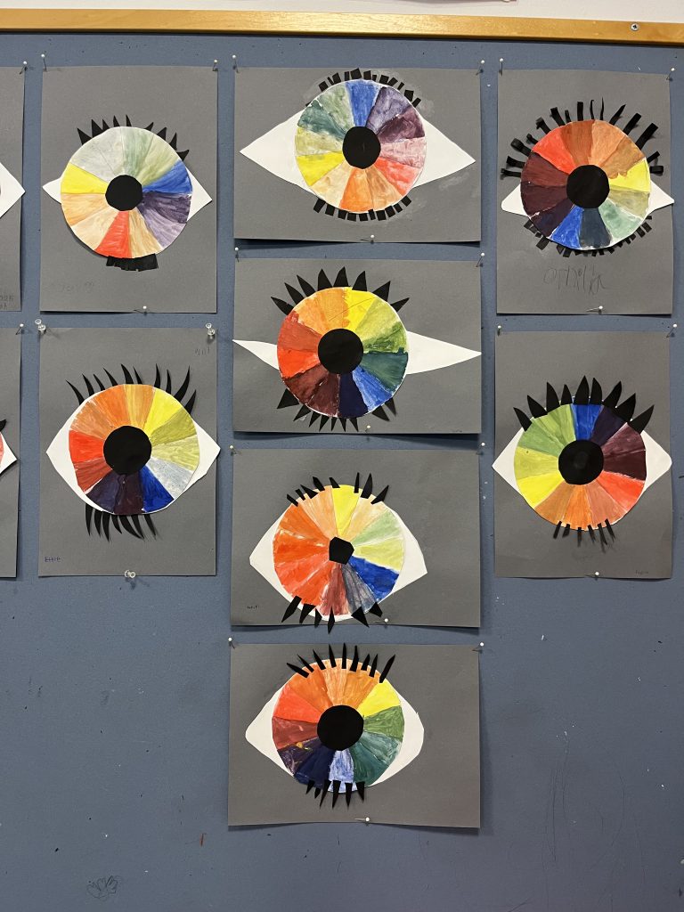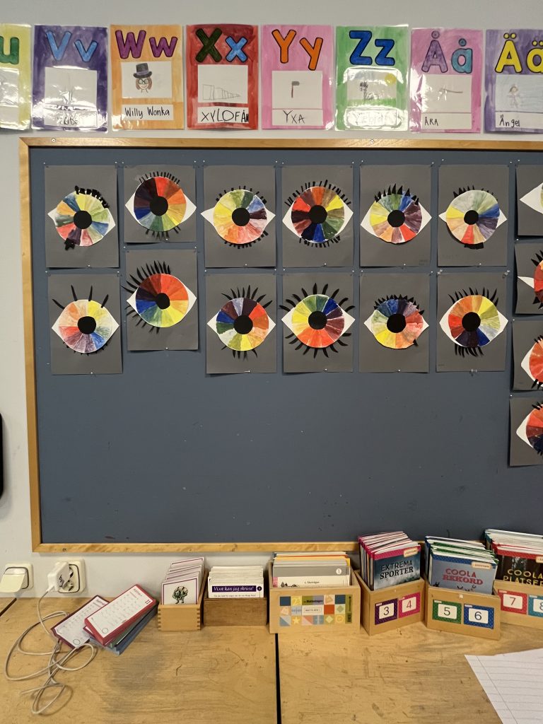Vid vår andra bildlektion använde vi vår färdiga färgcirkel för att skapa ett öga. Denna gång skapade vi genom att använda verktygen sax och lim. De fina resultaten hänger nu uppe på väggen och pryder vårt klassrum!