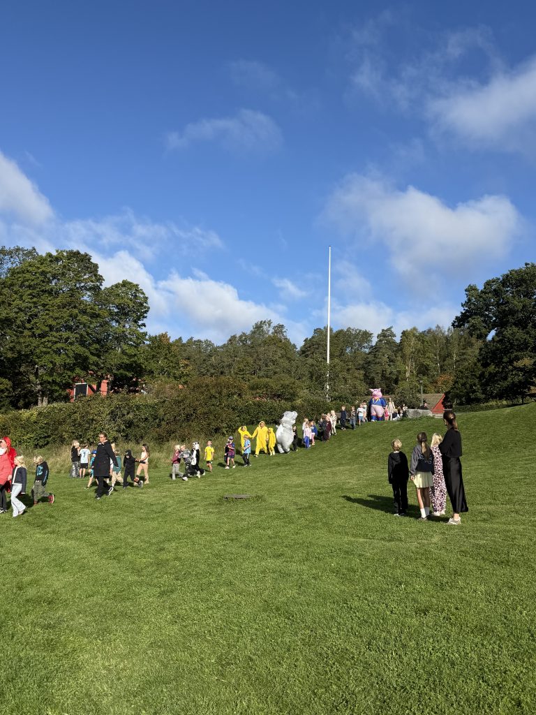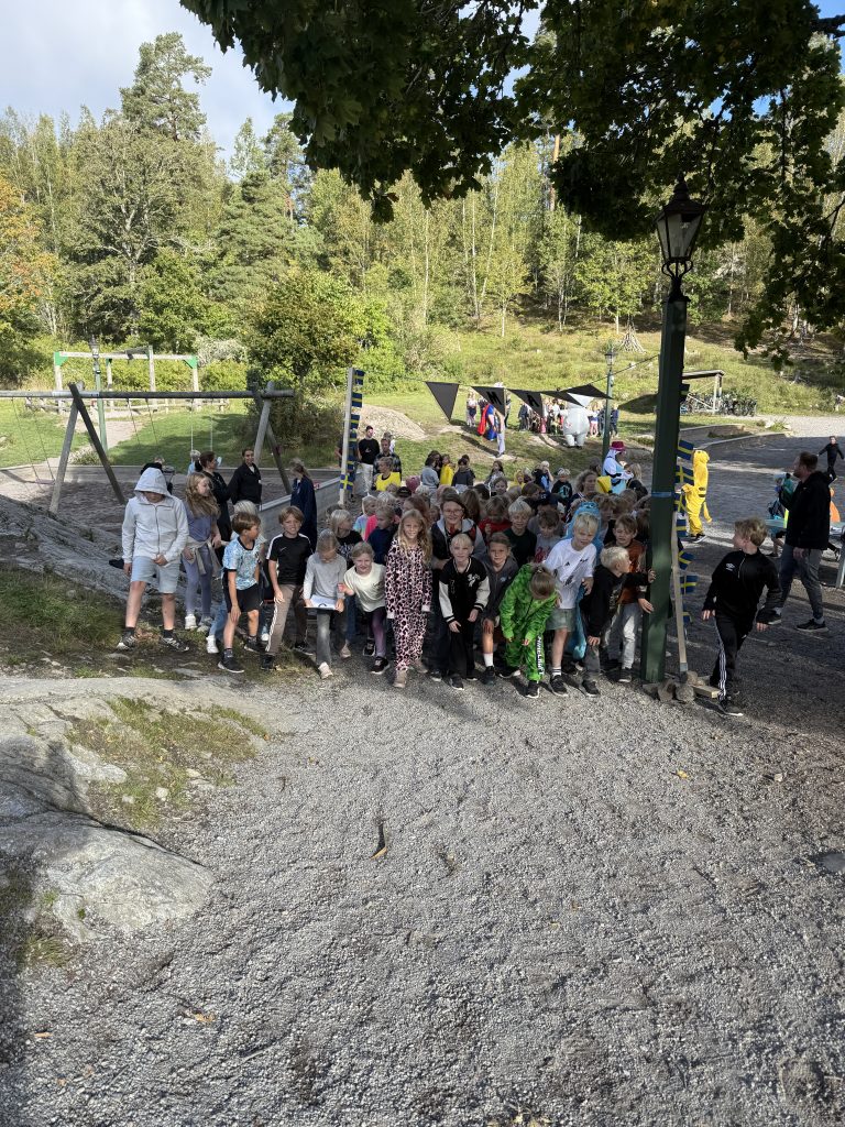 Traditionsenligt har vi sprungit in terminen genom vårt Lemshagalopp. Tillsammans springer alla Mellangårdens elever (fk – åk.3). I år var det elverna i Saturnus tur att hålla i uppvärmningen för de yngre barnen på skolan. I mindre grupper tog alla Saturnusar sig ann uppgiften med bravur. Löparna var uppvärmda och laddade inför loppet och kämpade sedan på med gott humör. De som behövde pausa en stund stod glatt och hejade på de andra som sprang förbi. Efter loppet återhämtade vi oss med frukt.